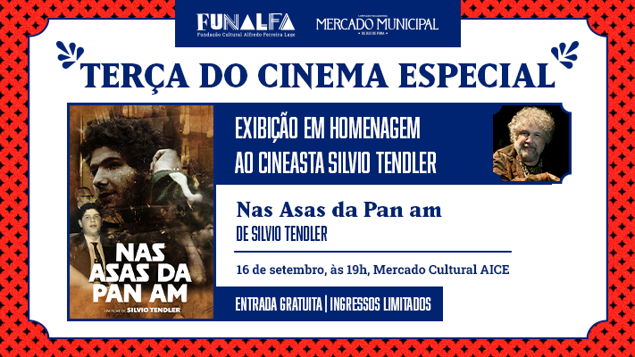 Será exibido, no auditório do Mercado Cultural AICE, o filme “Nas Asas da Pan Am”. A sessão está marcada para 19h e a entrada é gratuita. Os ingressos são limitados e começam a ser distribuídos uma hora antes do evento.