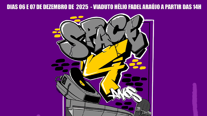 Nos dias 06 e 07 de dezembro no viaduto Hélio Fádel o coletivo “Space Hip Hop” comemora seus quatro anos de ocupação cultural com uma intensa programação de dois dias, reunindo batalhas de breaking, rima, beat, graffiti e best trick com premiações, artistas locais e show de grandes nomes da cultura hip Hop nacional, como Clara Lima (dia 06) e Rodrigo Ogi (dia 07). Além disso, o evento oferece workshops gratuitos pra população e feira de moda e arte.